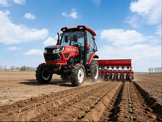 Turbocharged 490 engine for heavier soils and multi-disc plowing. The 80HP steps up to a reinforced TE chassis, raising rated traction from 12KN to 18KN — a real difference under implement load. Both share the 8+8 shuttle gearbox and dual hydraulic output. The most popular choice for operators who need one tractor to cover all daily farm work.