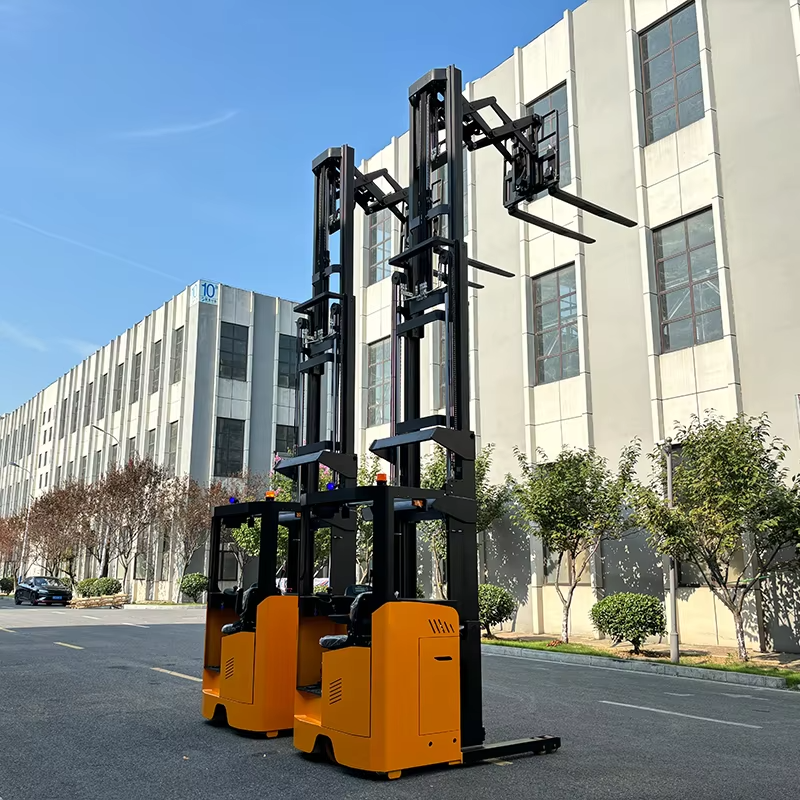 La serie DDD de HUAJING es una carretilla retráctil de doble profundidad con horquillas extensibles tipo tijera diseñada para operarios que trabajan turnos de jornada completa en entornos de estanterías de doble profundidad. Un pasillo sirve para cuatro filas de palets, lo que aumenta la densidad de almacenamiento del almacén hasta 40% en comparación con los sistemas de profundidad simple.