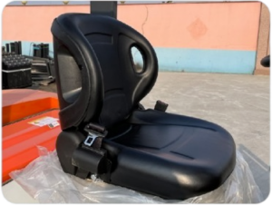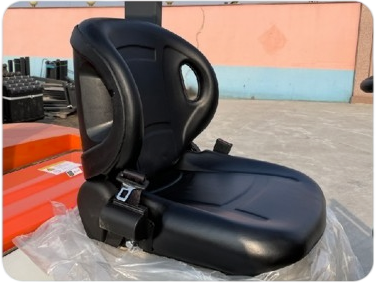 Padded suspension seat with seatbelt and adjustable backrest — reduces whole-body vibration on rough terrain.