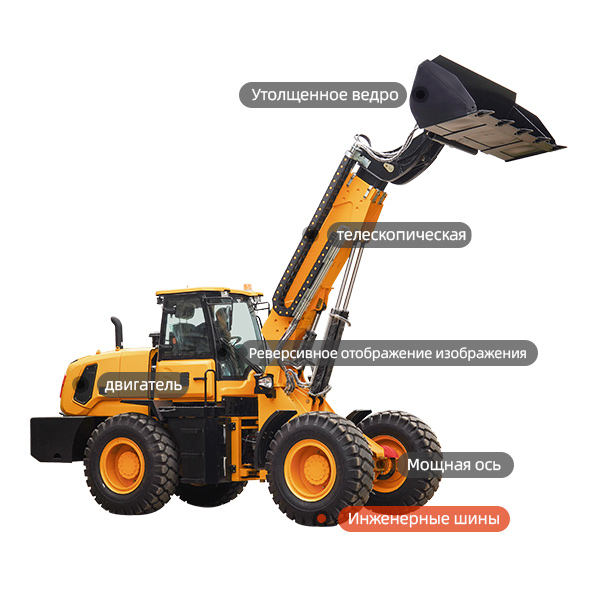 Telescopic arm loader increases its working range, (quick change) optional accessories: wooden fork, pipe, pallet fork, pitchfork, rock bucket, large bucket, snow bucket, mixing bucket, etc. Hundreds of accessories for sweepers meet different needs need.